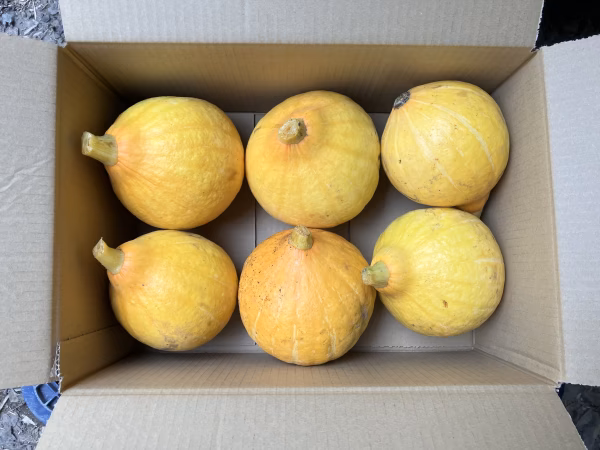 鹿児島産のコリンキー注文を受けてから、収穫日に収穫した6個を畑の空気も収穫しながらAB品大中小混合箱詰めして、当日発送します^_^