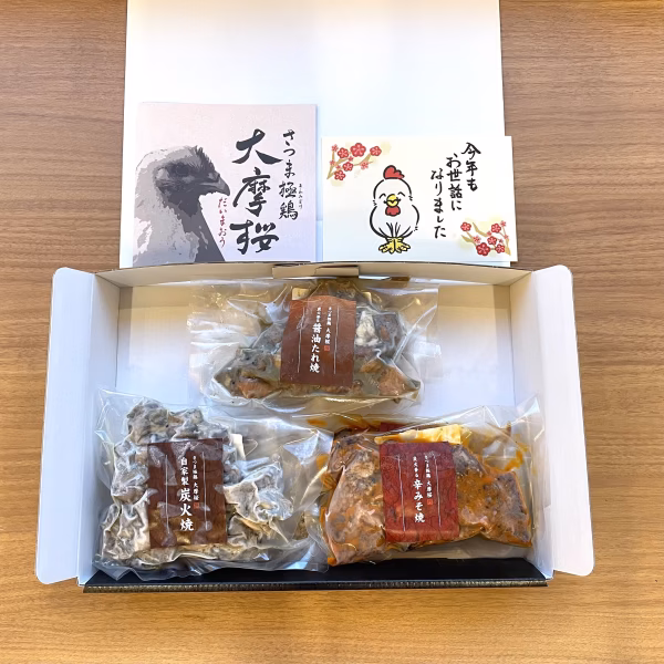 - 〈炭火焼き〉 原材料:鶏肉(鹿児島県産)・食塩、(一部に鶏肉を含む) 賞味期限:-18度以下保存にて加工日より180日間 〈醤油たれ焼き〉 原材料名:鶏肉(鹿児島県産)、たれ(しょうゆ、砂糖、にんにく、食塩、風味調味料、生姜、でん粉)、/調味料(アミノ酸等)、着色料(カラメル)、(一部に小麦・大豆・鶏肉を含む) 賞味期限:-18度以下保存にて加工日より180日間 〈辛みそ焼き〉 原材料名:鶏肉(鹿児島県産)、たれ、(醤油、さとう、にんにく、食塩、風味調味料、生姜、でん粉)、ヤンニョンジャン/調味料(アミノ酸等)、着色料(カラメル)、グリシン、PH調整剤、アルコール、(一部に小麦・大豆・鶏肉・ごまを含む) 賞味期限:-18度以下保存にて加工日より180日間