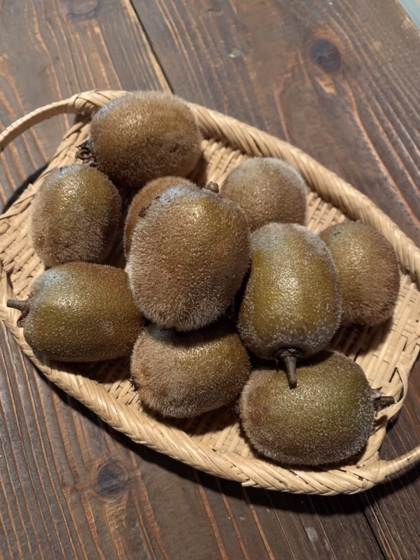 ▼商品概要 京都府産 無農薬 無消毒 キウイ 約1kgになります。 ▼数量、分量の目安 1個100g前後の大きめのものが10個前後になります。 お届け時は、硬いので必ずお好みの硬さまで「追熟」をして、お召し上がりください。 キウイ追熟方法 ビニール袋にリンゴやバナナなどと一緒に入れるか、一つをテーブルの角などに叩いて袋に密封して一緒に入れておくとエチレンガスが放出され追熟されます。 耳たぶくらいに柔らかくなったら食べごろで、ビタミンCの量も増え、糖度も上がり美味しく頂けると思います。
