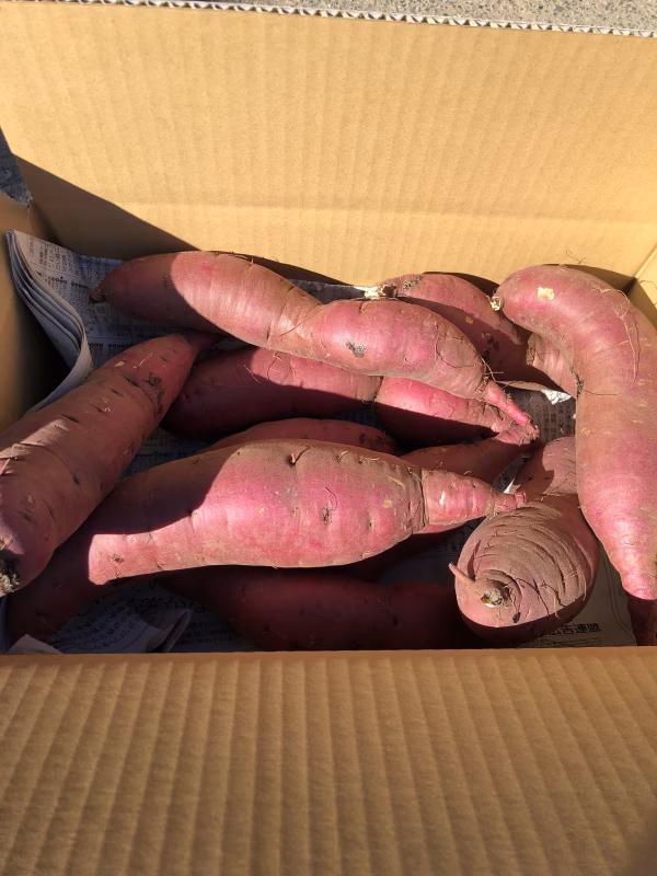 新潟県五泉市の黒ぼく(黒土)の大地でのびのび育った「さつまいも」です! 黒ぼくは保水性も良く畑作に適しているため、美味しくて濃い甘みのさつまいもに育ちます! 姫あやかの特徴として、肉質がやや粘質でしっとりとしていて、良食味であり、収量が取れない品種でサイズも小さいのでスーパーなどではあまり見かけない、ちょっと珍しい品種になります。 *さつまいもから出ている液状の乾いた後はデンプンが溢れ出た後なので、食味には影響はありません。 むしをデンプンを多く蓄えている証拠なので美味しいさつまいもを見分けるポイントになります!