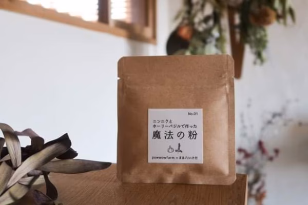 powwowfarm(栗沢町、ニンニク)、まる八いけだ農園(栗山町、ホーリーバジル)のコラボ商品。
