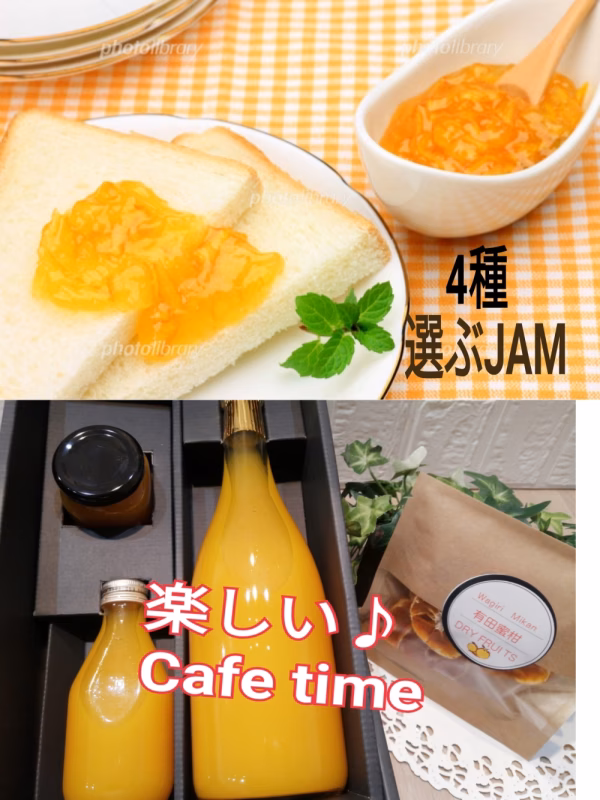 ①〜④からジャムを選んで、みかんジュース みかんドライフルーツを一緒に朝食を楽しい時間にしませんか?