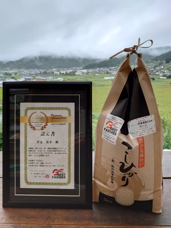 ▼伊東農園は、2020,2021,2023年米.食味分析鑑定コンクールに出品し、食味値90,食味度82、合計172以上でベストファーマーに認定されました。