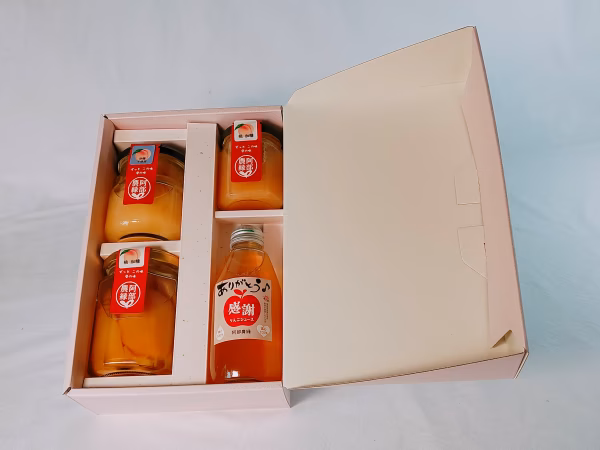 心温まるギフトにぴったりな、愛情たっぷりのフルーツセットです。この「ありがとうギフト」は、厳選された桃を使用したコンポートやコンフィチュール、さらには爽やかなりんごジュースをお楽しみいただけます。自然の甘さが際立つ商品は、大切な人への贈り物や特別な日のプレゼントに最適です。