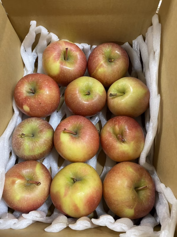 14日頃から発送します‼️ 蜜入チェックして際に弾いたこうとくです。 収穫して蜜入りチェックした際に、これは微妙だなと判断した訳ありこうとくです! 蜜入りジューシーで有名な高徳こうとくりんご🍎約1.8キロ9-14玉位入ります。 葉取らずこうとくです😄 かなり遅く収穫したので、蜜入は微妙ですが味は、甘くてジューシーです! 11月14日ころから発送し、なるべく早く召し上がって欲しいです♪ 葉取らず栽培ですので、色むらなどはありますが、その分、ながーく光合成をしているので、りんごが締まり、蜜入りが微妙でも、ジューシーで甘く美味いです! 一度召し上がって欲しいりんご🍎です。 箱の形状及びこうとくの扁平果形のため、2キロの箱に約1.8キロ約9-14玉位はいります。 ぜひご検討よろしくお願いします😄 めっちゃ美味いですよ😋