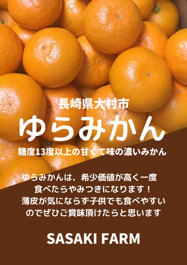 ゆらみかんは、極早生みかんの中でも糖度が高く味が濃いのが特徴です。また、薄皮が気にならず子供にも食べやすいみかんです。
