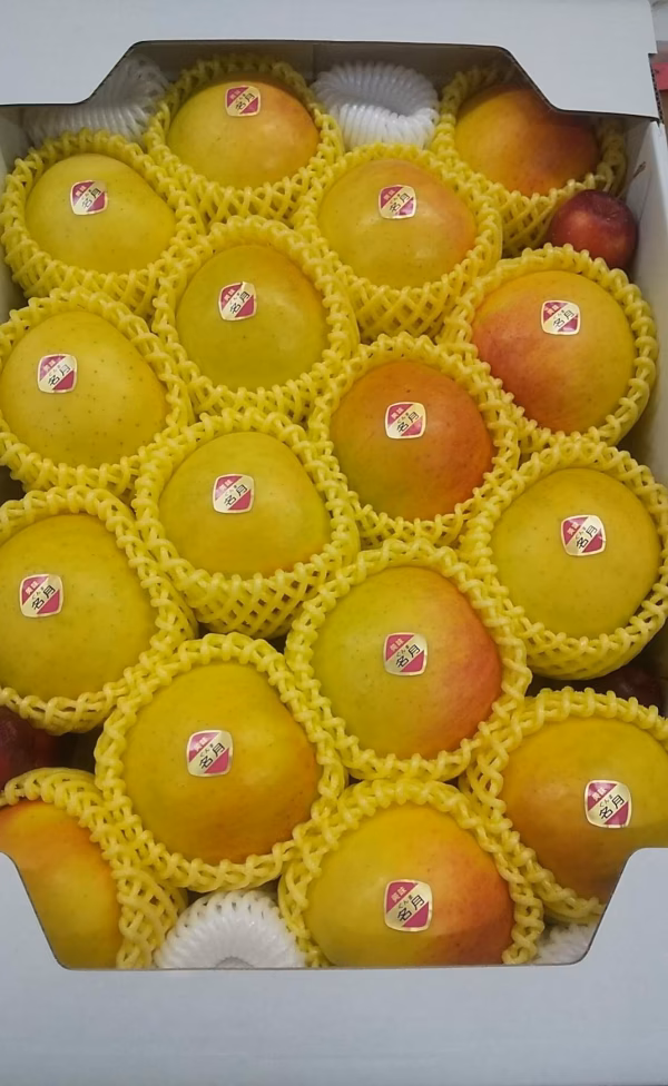 弊社のスタッフからも好評で、甘くて飽きのこない、食べだしたら気づいたら一玉無くなっている、この時期の美味しい黄色りんごの一つです。