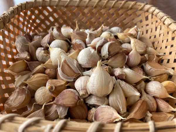 外皮の破れ、染み等で規格外となったにんにくを、一片ごとにばらしたものです。