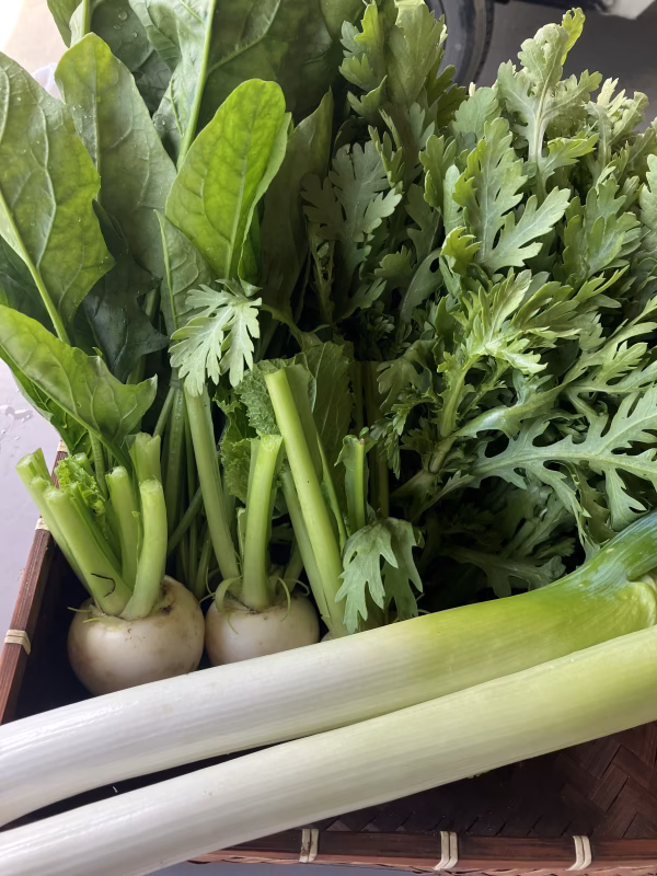 北信州では山々の紅葉が終わりかけ、冬がまじかに迫ってきました。 いつも「生ヤングコーン」や「おばあちゃん家の新米」でお世話になっているキビネギですが今年、第3段として「晩秋野菜詰め合わせBOX」を出品いたします。安全で美味しい野菜を箱に入るだけ詰め込んでお届けいたしますので、たくさんお召し上がりください。 ご用意した野菜はネギ、春菊、ほうれん草、カブの4種類。 11月末ごろからは大根が加わります。有機肥料と微生物による健康的な土作りを徹底していますので、化学肥料のエグ味などはございません。夫婦で心を込めて作った定番の野菜です。鍋はもちろんさまざまな料理にお使いください。 昨今、野菜やお米の価格が高騰し続けていますが、大切なお客様には「安全で美味しい農産物をたくさん食べてほしい」と私たちは思っています。ギッシリ詰まった新鮮野菜で冬に備えましょう!