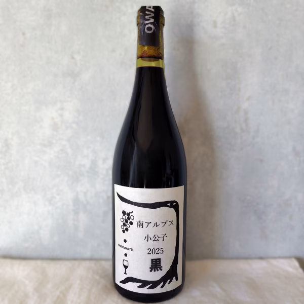 山梨県南アルプス市で、南アルプス山脈、富士山、八ヶ岳に囲まれて育った自然栽培・有機認証の葡萄、品種名「小公子」を赤ワインにしました。
