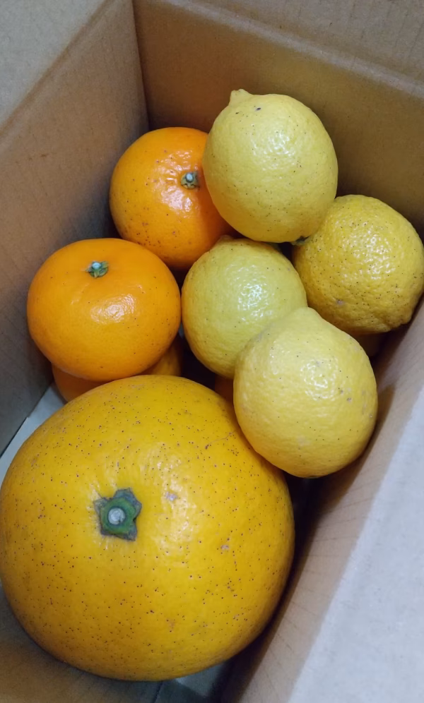 ・レモンは樹上で冬を越したものです。皮がゴツゴツとしていますが、常温で長く保存ができるメリットもあります。