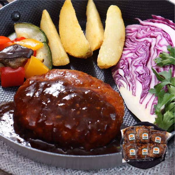 使用しているお肉は元気豚100%。ジューシーでふんわりやわらかい、デミグラスハンバーグのギフトセット。