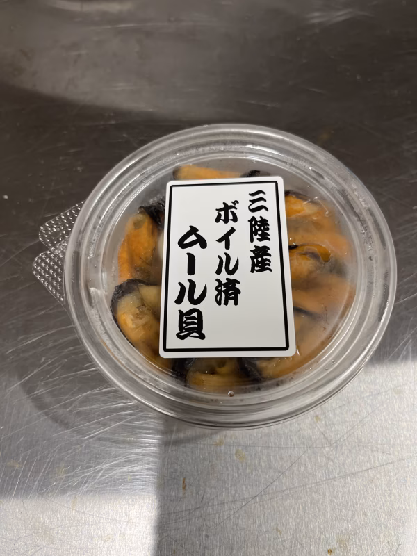 三陸の海で育った大きめのムール貝を、水揚げしてすぐに蒸し上げてパック詰めにした品です。風味を保ったまま冷凍保存しています。