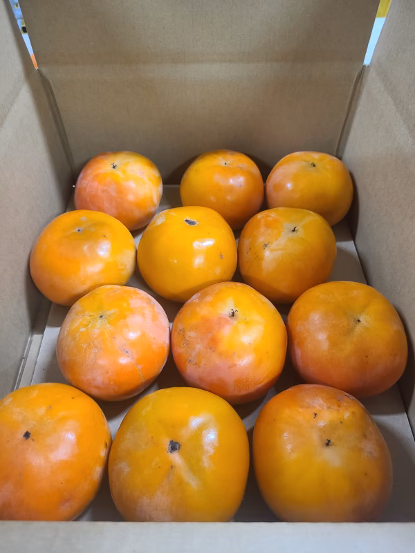傾斜地で水はけがよい園地で収穫している柿です。そのため、実太りはしにくいですが、その分、甘みが凝縮され、とてもおいしいです。