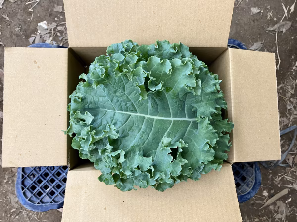 鹿児島産のカリーノケール注文を受けてから、収穫日に収穫した箱込み500g前後を畑の空気も収穫しながらAB品大中小混合箱詰めして、当日発送します^_^