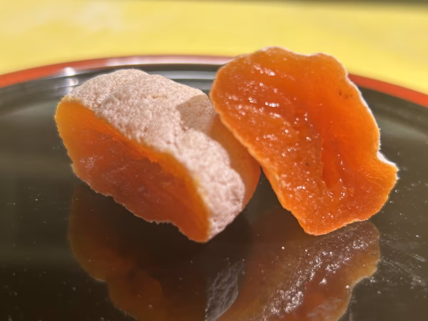 ◎2026/1/5前後から発送が始まります◎ 納得がいくものを仕上げたいので、出来上がりによって発想が遅れる場合がございます。 大まかな日時指定のみ承りますのでお問い合わせ頂ければと思います。 *寺畑農園の市田柿* 寺畑農園の市田柿の歴史は100年以上前に遡ります。 当時焼き柿として始まった干し柿。GIマーク認定されるまでもずっと同じ製法で干し柿を作ってまいりました。 14代目、15代目、16代目と家族3代で丁寧に手間暇をかけて手作業で作る特別な逸品です。 じっくりと南信州特有の霧の多い気候を利用し丁寧に1ヶ月以上かけて干しあげ、寝せこみ、粉だし作業をしておりますので、表面に柿内部から染み出した糖分がきめ細かい結晶となって表面にまといます。 渋み検査、水分量検査等しっかりと行っております。 ▼品種・味の特徴 市田柿 天然のものとは思えない上品な甘さです。 表面の白い粉は柿内部から染み出し、結晶化した糖です。 中には植物ですので、タネがあるものがございます。 お正月では縁起物とされ、子宝の象徴とされてまいりました。 ご家族でお召し上がりの際はタネ入りのものがあるかもしれませんが、福をかき(柿)集める子宝の『当たり』として楽しんでお召し上がりいただければ幸いです。 ▼数量、分量の目安 200gパック一袋には4-7玉の市田柿が入っております。 2024年度は大玉が多く糖度が高いため、1玉あたり20-50g 前後のばらつきがあります。 なるべく大きさを揃えてパック詰めをいたします。 ▼注文に際しての注意点(配送方法や納期指定など) 市田柿の表面の白い粉の結晶はモドリといい、15℃以上の暖かい部屋に置いてしまうと溶けてしまうため、ご自宅では冷蔵庫での管理をお願いしております。 賞味期限は製造から60日となります。 品質保持のため、ご了承をお願いいたします。