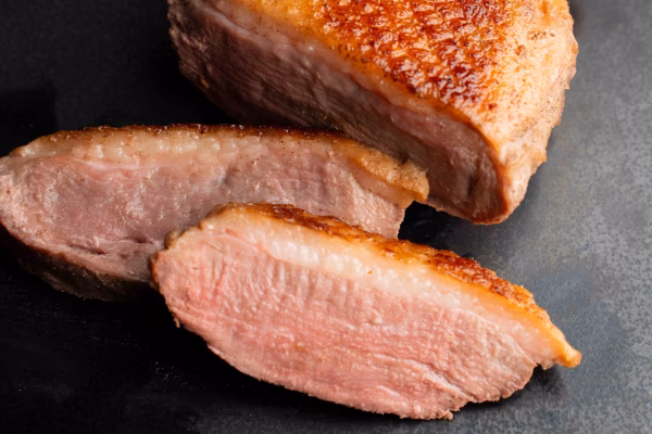 かすみ鴨ムネ肉の表面を強火で焼き、ハーブを入れて真空調理法で煮込みました。皮からは旨味と香ばしさ、さらには野趣溢れる赤身肉を一口にお楽しみいただけます。1パック150g以上入りで中はロゼに仕上がっており、テーブルに流れる時間・雰囲気を特別なものに感じさせてくれます。