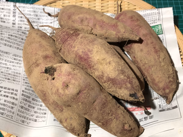 ”さつまいもは本年お試しで数株植え付けしました。小ぶりですが綺麗な美味しい芋が収穫出来ました。収穫から1ヶ月熟成させたので甘さも増しております!