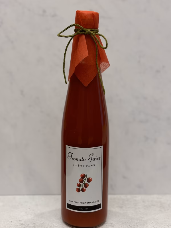 【ミニトマトジュース(ストレート)】 ⚫︎原材料 ミニトマト(宇城市松橋産) ⚫︎内容量 500ml ⚫︎賞味期限 製造日より1年 ⚫︎保存方法 開栓前は直射日光や高温を避けて常温で保存して下さい。 ⚫︎販売者 コウ農園 ⚫︎製造者 有限会社 工房 阿蘇ものがたり
