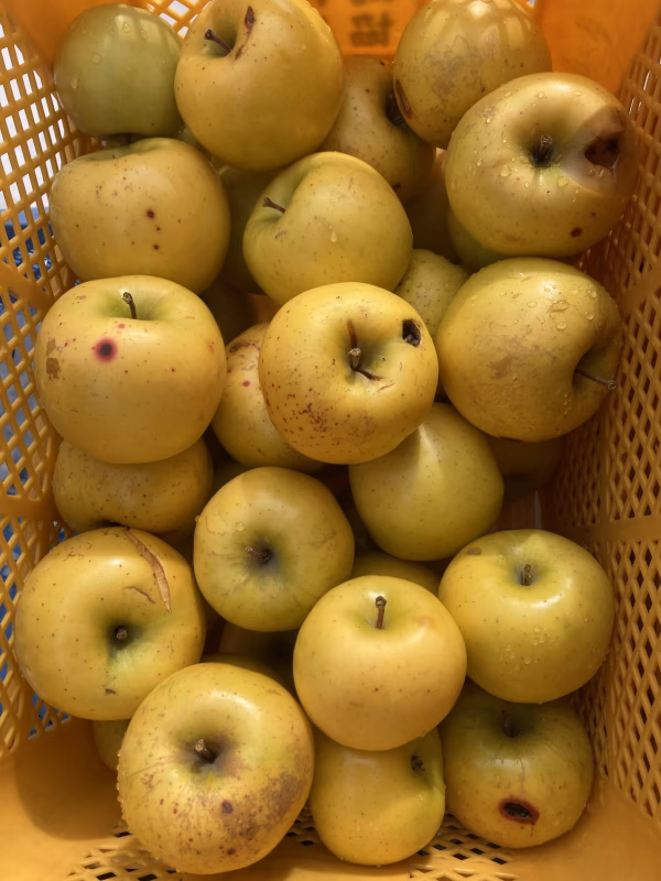 痛みがあったり見栄えが悪いですが、十分美味いりんごで、歯ごたえはシャキシャキで硬いです♪