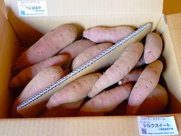 焼き芋にした時に「滑らかな食感」と「甘さ」が人気で、十分貯蔵されたものは水分が多く「絹のようにしっとり」と「滑らかな舌触り」と焼き上がりがとても甘い焼き芋になります。