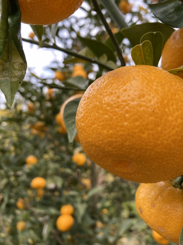 和歌山高野山麓にて、 豊かな土壌で太陽を沢山浴び育ちました。 今回は、はるみ。 甘味が強く、爽やかな心地いい香り。 みずみずしく弾けるような果実。 そろそろ酸も程良くなってきました。 今季は収量が少なく極少量での販売となります! 5kg箱で梱包します。 少し傷あり、サイズは大小混合になります。