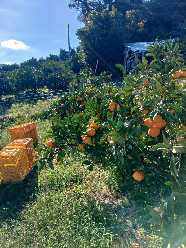 12月に収穫する中生みかんです。根が土中深く入らないため過度に水分を吸収しないため美味しく仕上がり安い品種です。昨年から採れはじめました。