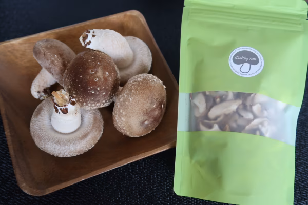 朝に収穫したしいたけをすぐに冷蔵庫で冷やします。その後、スライスおよび乾燥し、新鮮な状態をキープいたします。