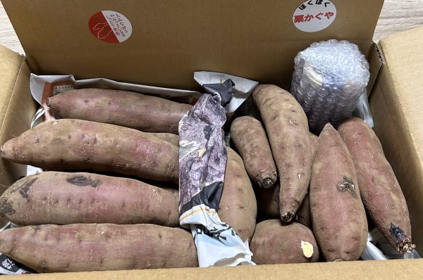 届きましたら直ぐに開封して、中身をご確認ください。さつまいもは10度〜15度の屋内で届いた状態で保存をお願いします。