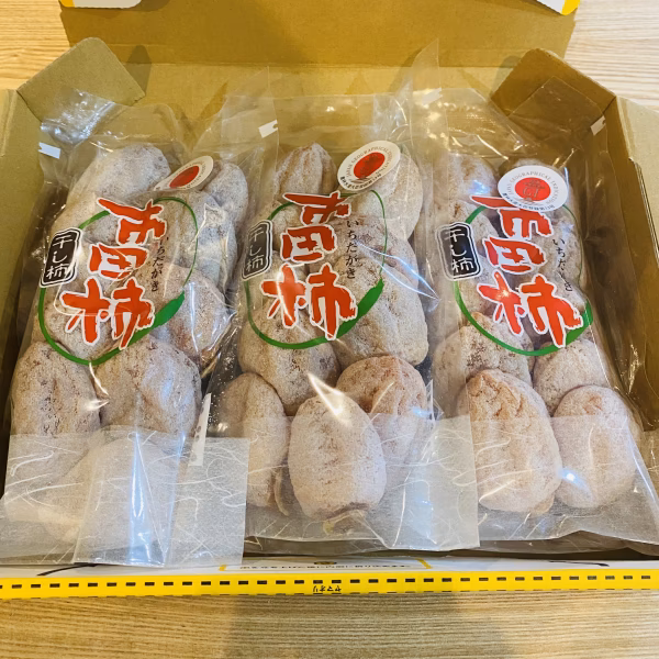 ※この商品は12月25日ごろから順次発送予定です。 表示されるお届け予定日につきましては、ご注文から1週間以内と設定されているため、12月25日以前の日にちが表示されている形となっております。ご注意下さい。 ◉長野県の豊かな自然と寒暖差が育む「市田柿」は、砂糖不使用の自然派ドライフルーツです。表面の白い粉と飴色の果実が特徴で、伊那谷独特の地形によって生じる朝霧に晒される事でにより、モッチリとした食感と洗練された甘さが味わえます。  そのままはもちろん、チーズやオリーブオイルを合わせれば、新たな美味しさに出会えます。一粒一粒に込められた農家のこだわりを、ぜひお楽しみください! ◉長野県GAP (農業生産工程管理・適正な農業生産活動)の基準を満たした農家が作る安心安全な干し柿です。GI認定(農林水産大臣第13号)された正規の市田柿です。 ◉配送時期 12月25日ごろから順次発送いたします! ◉内容量: 正味300g×12個 ◉サイズ 300gひとパック8〜11個入り ◉注意事項 ・黒い部分はポリフェノールの一種のタンニンです。カビではありませんのでご安心ください。 また、開封後はお早めにお召し上がりください。