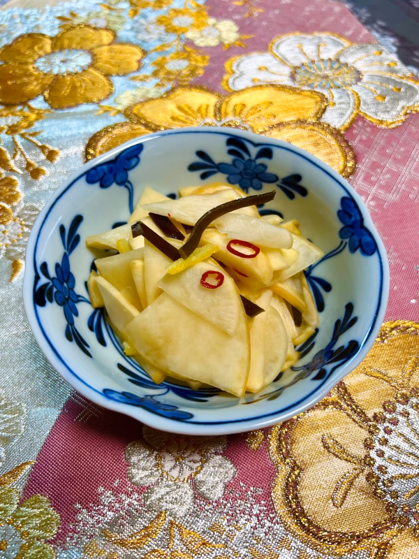 オレンジかぶ、塩、酢、砂糖、だし昆布、鷹の爪