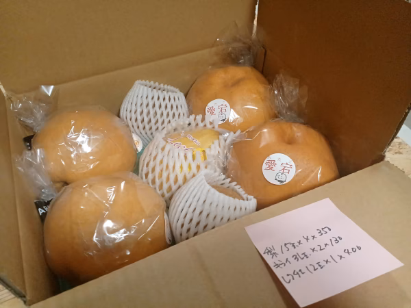 - 梨は袋に入ったまま冷暗所、レクチェ・キウイは常温保存