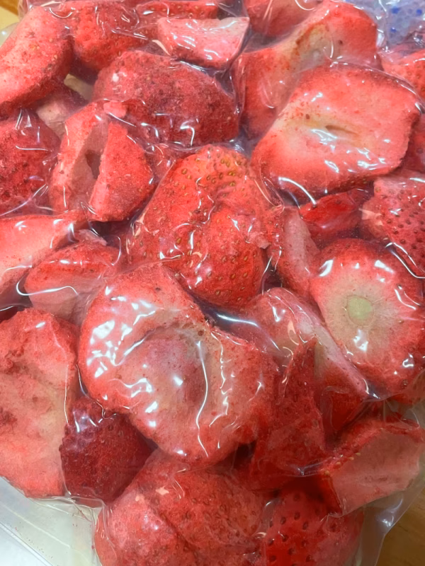 新鮮なままのあまおうの訳あり部分をカットして、急速冷凍し、その後フリーズドライに仕上げました♪