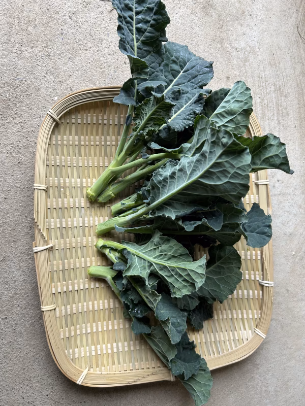 ブロッコリーとケールのかけあわせのアレッタは、葉、茎、つぼみ全部食べれます。