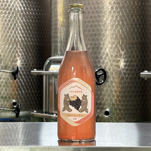 当園で栽培した2023年産ツヴァイゲルトレーベを使用してロゼワインを醸造し、このロゼワインにメルローの果汁と酵母を加えてビン詰め、ビン内2次発酵した微発泡の辛口ワインです。