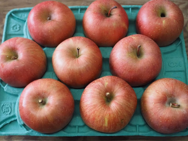 2024年内にお届していたものを比べると、風味は濃厚というよりはすっきり軽いものになります。いくつか糖度を計測したところ13度前後でした。酸味よりも甘味を重視したい方には、実は今の時期のふじの方がいいかもしれません。ただ、果皮の硬さが気になったり、皮にえぐみを感じる場合がありますので、皮をむいてお召し上がりいただくことをおススメいたします。