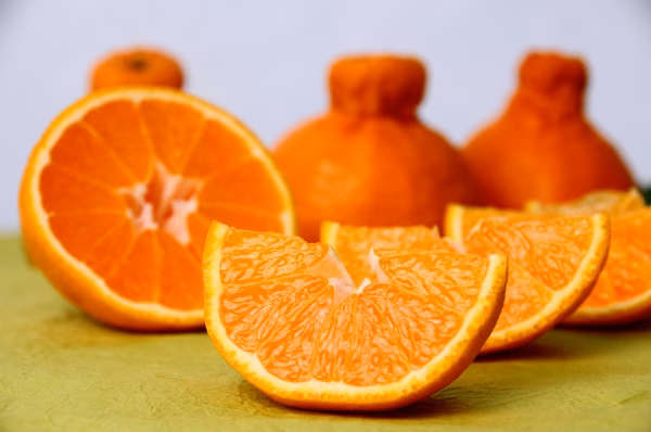 たっぷりと果汁を含んでいるため、食べ応えも抜群で、味わいもパワフル!さらに、チャームポイントの“デコ”が相撲取りのちょんまげのように見えることから、「どすこい!!横綱 みかん」と名付けました。