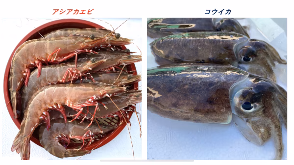 獲れたての天然アシアカエビ1kgとコウイカ1kgをお届けします♪