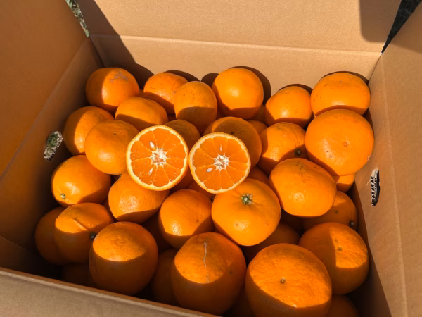 このみかんを栽培している長崎県雲仙市瑞穂町は島原半島の北部に位置し、北は有明海と多良山系を望み、南は雲仙岳がそびえ立つ風光明媚で温暖な地域です。 島原半島産の煮干しカス肥料に米ぬかやコーヒーカスなどを配合して発酵させた手作りボカシ肥料など有機質肥料だけしようして育てています。 また、農薬節減栽培をしております。 防腐剤やワックスは使用しておりません。是非一度ご賞味下さい。 品種は『はれひめ』というE- 647に「宮川早生」を交雑して育成した柑橘です。 みかんタイプでやや厚めの外皮ですが、剥きやすくなっております。 糖度こそ中生・晩生みかんと比べると高糖度ではありませんが、減酸が早いため甘みを感じやすくなっております。またオレンジのような芳醇な香りも楽しめるのもこの品種の特徴です。 ※訳あり品ですので、サイズは大小バラ詰め。表面に傷・スレ・奇形・黒点・着色不良などあります。ご了承下さい。 ※写真のように種が少々ございます。ご了承下さい。