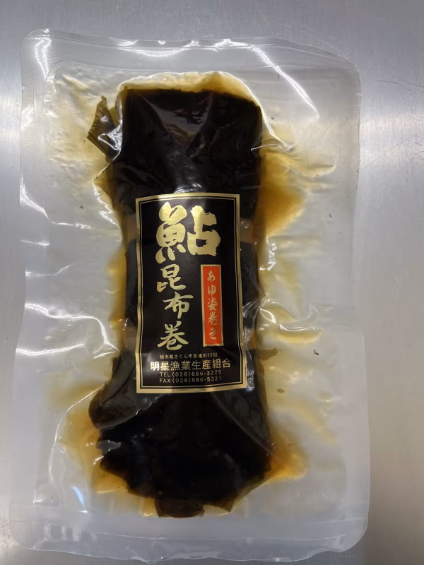 - 名称 鮎昆布巻 原材料名 あゆ(栃木県産)昆布(日高昆布)かんぴょう (栃木県産)砂糖 醤油 酒(一部に小麦を含む) 製造者 栃木県さくら市喜連川3232 明星漁業生産組合 栄養成分表示(100gあたり) 鮎昆布巻き エネルギー 152kcal たんぱく質 8.3g 脂質 5.2g 炭水化物 18.1g 食塩相当量 0.81g ※推定値