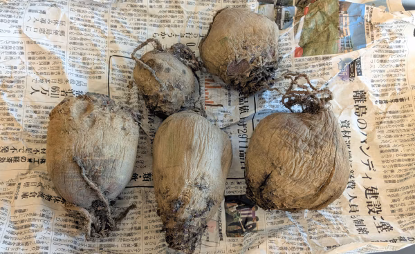 - 新聞紙にくるんで保存します(新聞紙で来るんだ状態でお届けします)。