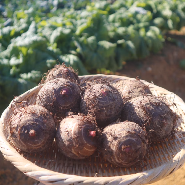 ・やさしい甘み、ほのかな塩味、奥の方に酸味と旨み。味つけしなくても、すーっとのどを通る美味しさ。里芋らしい芳ばしい土の香り。ほっくり、ねっとり、程よい食感で喉ごしが良く食べやすい。