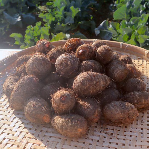 ・やさしい甘み、ほのかな塩味、奥の方に酸味と旨み。味つけしなくても、すーっとのどを通る美味しさ。里芋らしい芳ばしい土の香り。ほっくり、ねっとり、程よい食感で喉ごしが良く食べやすい。