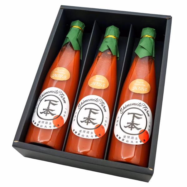 甘さを抑えて酸味が効いて「懐かしい味」と定評の下本農園のトマト。完熟トマトを搾ってジュースにしたら、口当たりがいいまろやかなトマトジュースになりました。