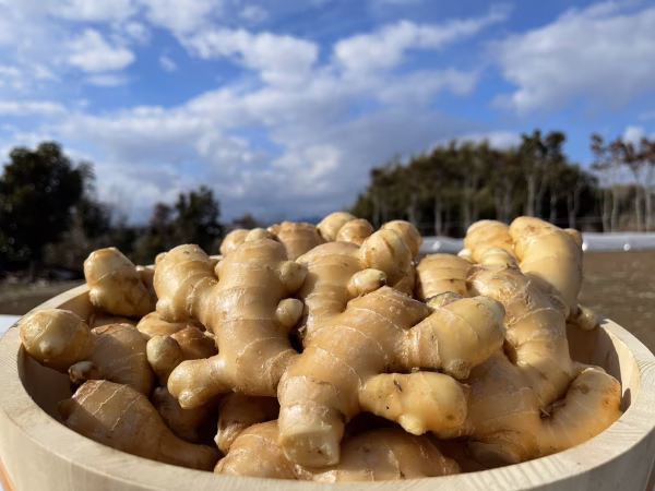 熟成された「しょうが」を神奈川 湘南よりお届けします! 当社は野菜本来のうまさを引き出すことにこだわり、栽培期間中及びその前作の栽培も農薬・除草剤などの栽培効率を上げるような薬剤は全て不使用で栽培しました。 一つ一つ、手で掘り上げた生姜は自家製の定温貯蔵庫で香りと辛みを熟成させました。 地域によって「囲い生姜」「ひね生姜」など呼び名は違いますが、こちらの「湘南発 しょうが」は熟成した根生姜になります。 バリエーション豊かな生姜。普段のお料理に少し生姜を足していただくだけで香り豊かな体温まるメニューに様変わりします。 例えば、普段のお味噌汁にすりおろしたしょうがを入れると香りで食欲をそそり、辛みで温まるお味噌汁の出来上がり♪ご賞味ください。 当社のこだわり! ・出がらしの茶葉などで作られた植物性堆肥をメインで使用(動物性は市販されている完熟のもののみを使用) ・地域で不要とされた木や竹を伐採、チップ化して使用 ・本来廃棄される卵の殻を引き取り洗浄・粉砕して使用 持続的な農業を心がけたら、このような循環式農業に行き着きました。 手間ひまかけて育てた風味豊かな生姜をぜひご賞味ください♪ 【発送について】 ・宅配便で常温発送いたします。 ・水洗い後、鮮度保持袋に入れてお届けします。 ・届きましたらただちに開封していただき調理又は適切な保管をお願いします。 【保存について】 ・生姜は低温と乾燥に弱いので生姜の肌が湿り気のある状態でポリ袋などに入れて口を軽くしばり、日の当たらない13度以上の場所で保管をおすすめします。(適温は13度くらいです) ・袋の内側に水滴がつかなくなったら霧吹きなどで水分を足してやると湿度を保持できます。 ・ビニール袋での保存は生姜の呼吸を妨げる場合がありますのでおすすめしません。 ・保管の温度が高いと芽が出やすくなりますが、切除すれば通常通りご利用いただけます。 ・冷蔵庫での保管は温度が低すぎて生姜の傷みが早くなりますので、お早めに調理することをおすすめします。 ・食べきれない場合に関しては、用途に合わせてカットやすりおろしして冷凍保存もおすすめです!