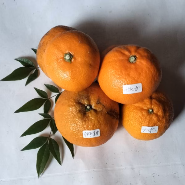 伊予柑(香りが爽やかで、酸と甘さのバランスが安定した味わい)、デコみかん(柑橘の酸味と甘味が詰まった香りも強く、食感もプチプチ)、せとか(香りが華やかで、果実はシヤキシヤキ&ジユーシー)の春みかんたちです。