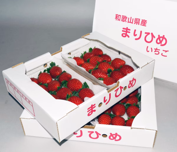 和歌山県オリジナルのいちご、まりひめはきれいな円錐形で甘みが強く程よい酸味があり、果汁たっぷりのジューシーないちごです。