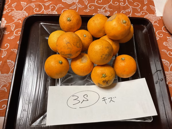 小粒で傷ありです。ゼリーなど加工していただければ、、と思います。