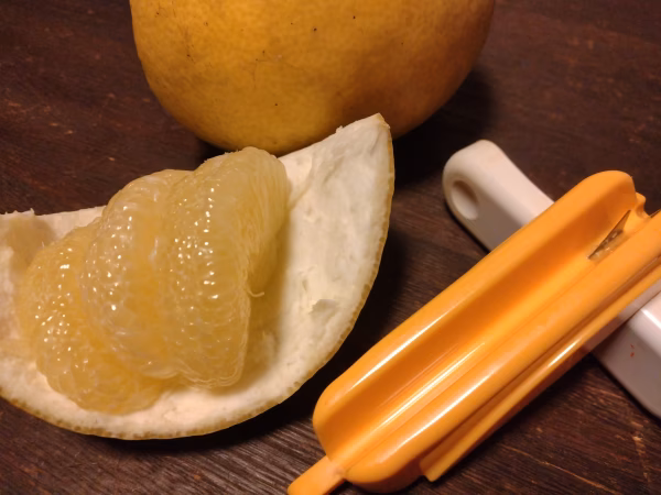 よりこんぼの文旦は、お野菜と同様、農薬・化学肥料・除草剤を使わずに育てています。皮には傷や黒点があるものもありますが、中身に問題はありません。また、防腐剤・ワックス等も使用しておりませんので、皮も安心してお使いいただけます。