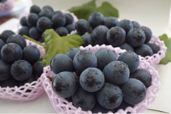 ナガノパープルはその名の通り長野県生まれの高級大玉ぶどう品種。大玉で皮ごと種なしで食べられるのが特徴です!